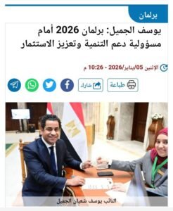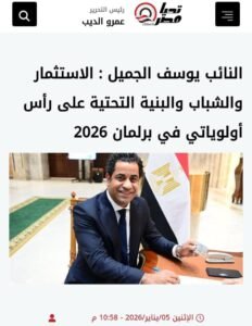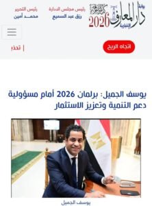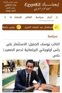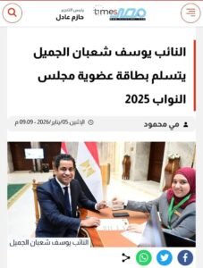 الصحف والمواقع الأخبارية تحتفى بالنائب يوسف الجميل أثناء تسلمه بطاقة عضوية مجلس النواب المصرى