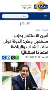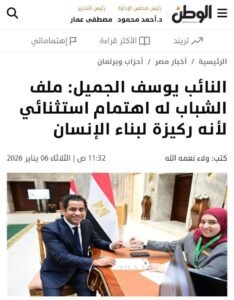• أشار الجميل إلى أن خطته البرلمانية ترتكز على عدة محاور رئيسية، في مقدمتها دعم قطاع الشباب والرياضة عبر تطوير مراكز الشباب وتحويلها إلى مراكز خدمية وثقافية ورياضية متكاملة تخدم القرى وبندر بني سويف.